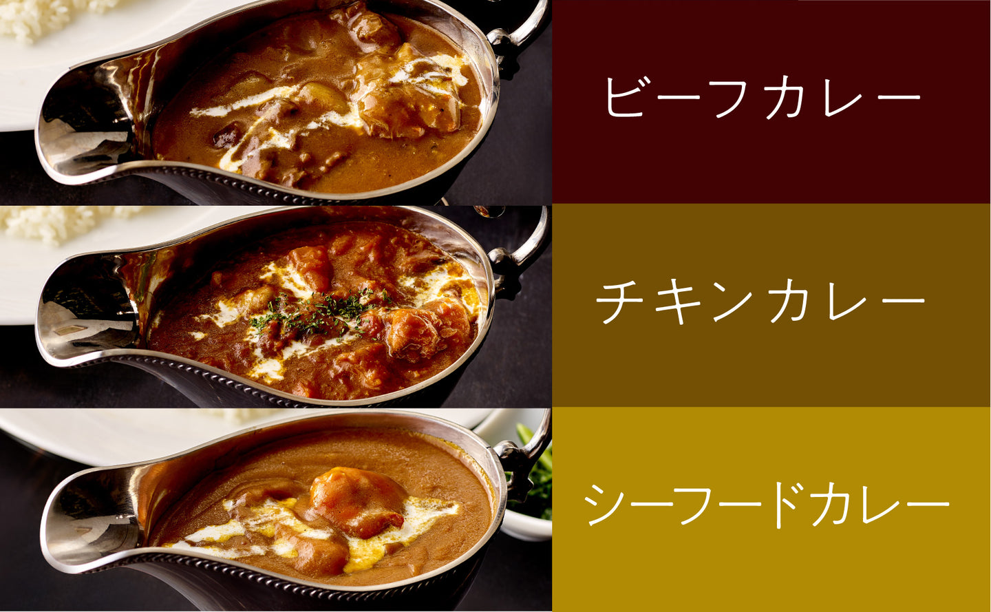 カレー好きのあの方へ、黒船亭のカレー3種の食べ比べセットです。